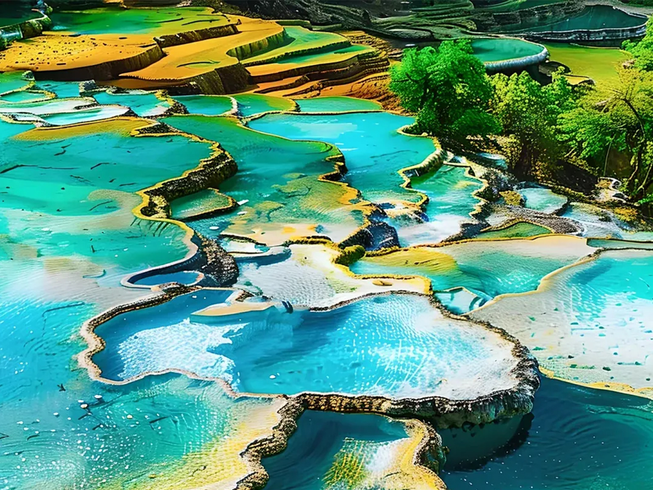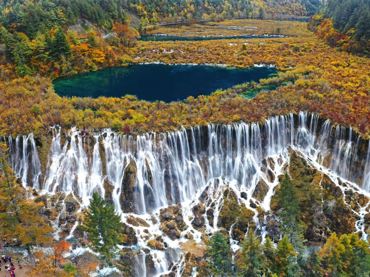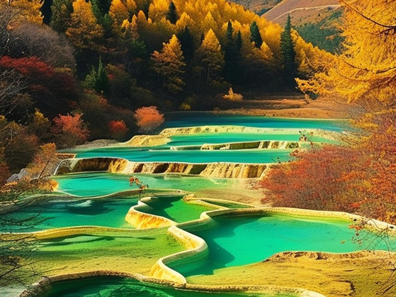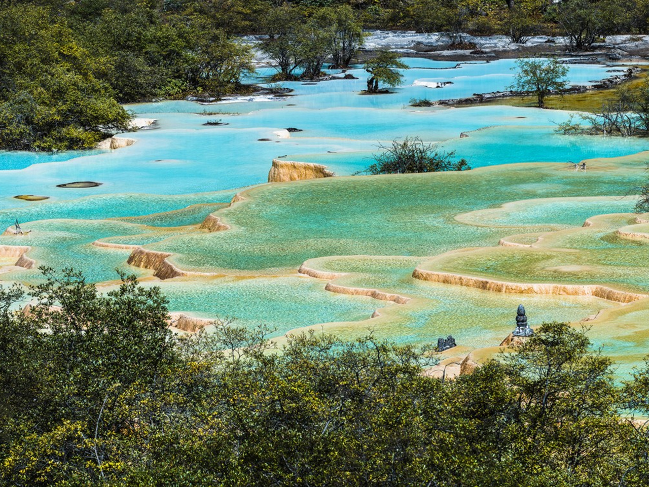 After breakfast, you’ll take a drive to Huanglong Scenic Area, known for its colorful calcified ponds, limestone formations, and glacier-capped mountains. You can either hike or take the cable car (at your own expense) up the mountain for a panoramic view of the area’s natural wonders. Huanglong’s Five-Colored Pool is a major highlight, with pools in vibrant shades resembling a rainbow. Here, you can take photos and enjoy the spectacular scenery. Lunch will be arranged inside the park. In the afternoon, you’ll continue exploring other attractions in Huanglong, such as Welcome Pond and the Golden Sand Ground. Return to your hotel in Jiuzhaigou in the evening. Overnight at a five-star hotel in Jiuzhaigou.
