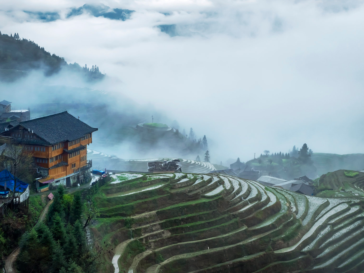 After breakfast, drive approximately 2 hours to the Longji Rice Terraces. The terraces were built centuries ago by the Zhuang and Yao ethnic minorities and spread across the mountains like a vast, beautiful painting. Each season offers a unique view: mirrored waters in spring, lush greenery in summer, golden rice fields in autumn, and snow-covered terraces in winter.