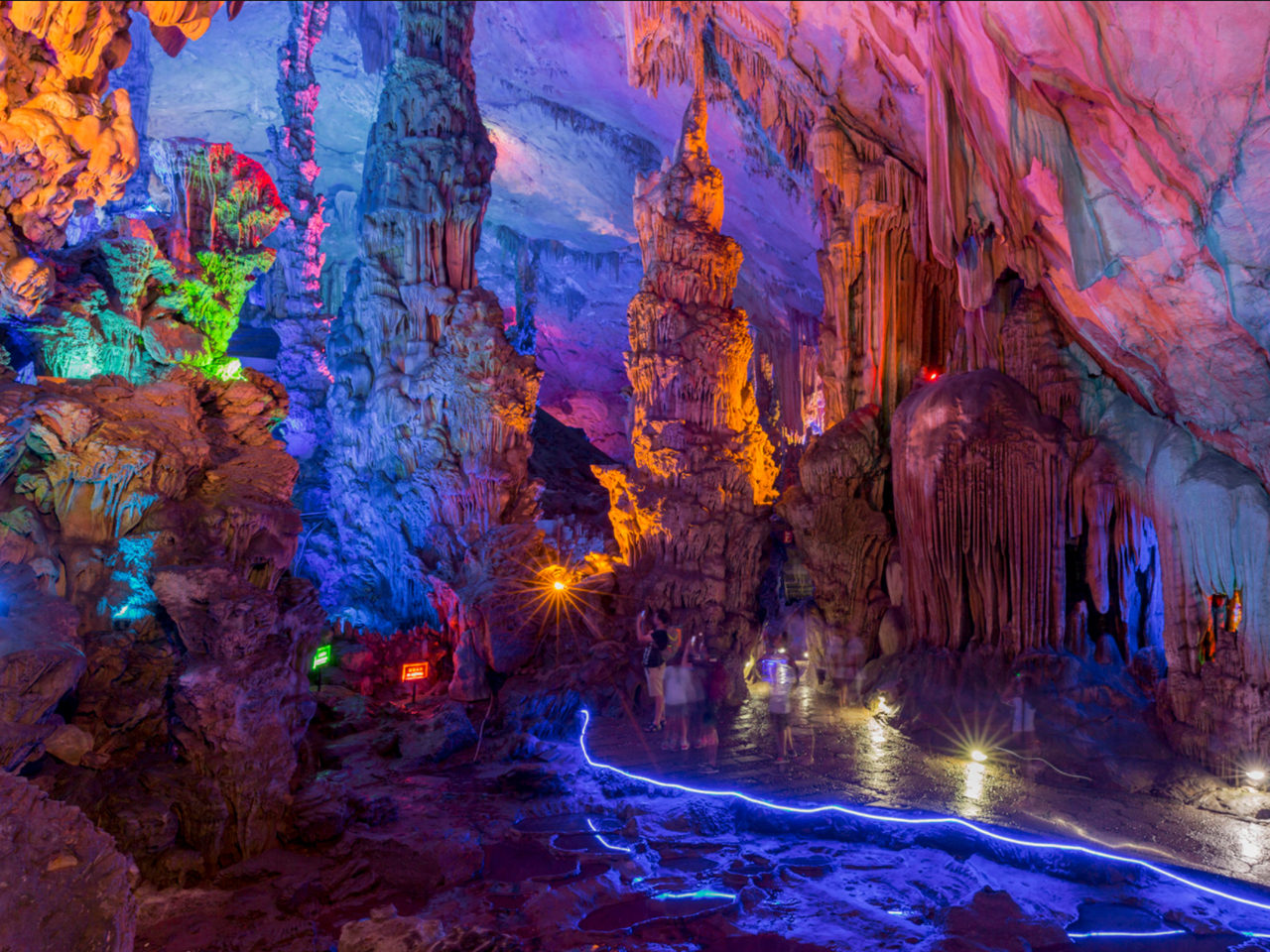 After breakfast, you’ll visit Reed Flute Cave, one of Guilin’s most famous limestone caves. Inside, colorful lights illuminate unique stalagmites, stalactites, and rock formations, creating a magical atmosphere that feels like stepping into a fantasy world.
